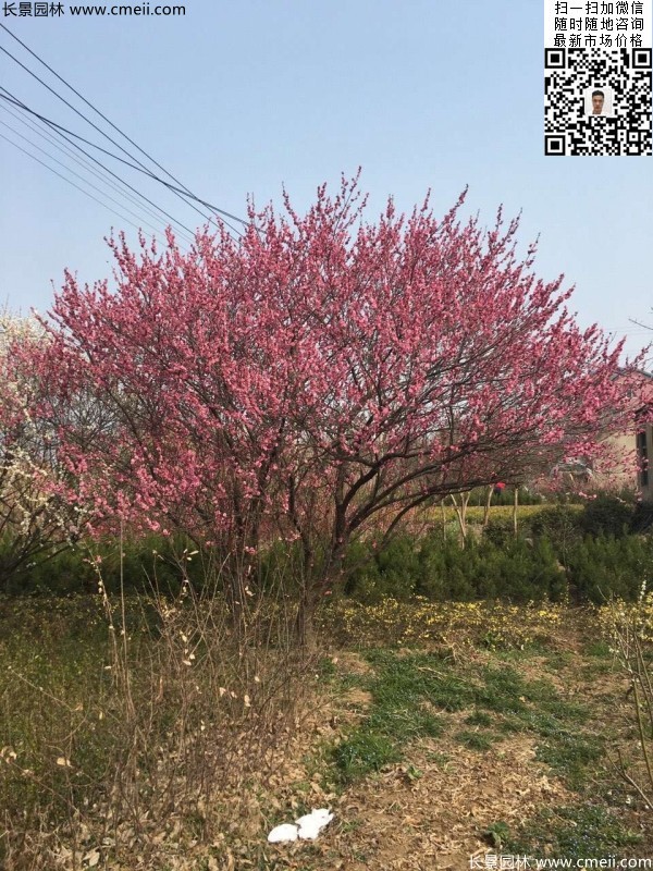 一般栽2-5年生大苗,栽植 方式可用孤植、叢植或群植。培植大面積的梅林、梅嶺或梅山時,應于陽坡或半陽坡栽種,株距3-5米。 要疏密有致,配置自然。經掘樹穴、施基肥后,再定植和澆透水,加強管理。梅樹整形,以自然開心形為宜。