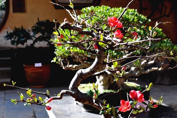 貼梗海棠盆景造型獨特,看完了這么多的盆景造型,是不是覺得太神奇了;自然的生長再加上人為巧妙的攀扎整形,一盆盆不一樣的造型就制作出來了。